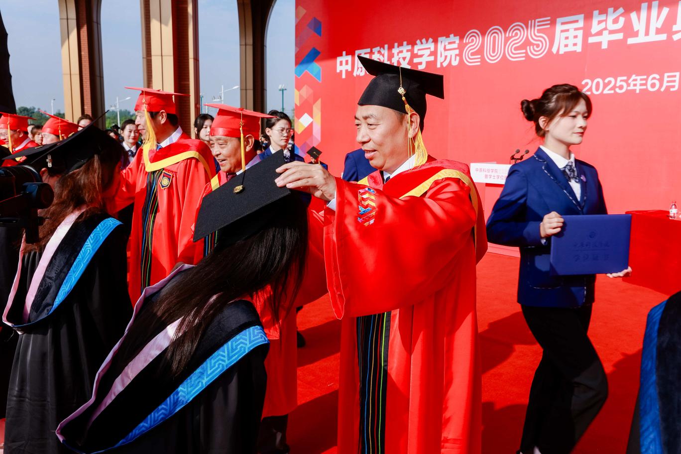 党委副书记、副校长杜建松宣读《关于表彰和奖励2025届毕业生的决定》,对在学业、科研、竞赛等方面表现突出的毕业生予以嘉奖。在热烈的掌声中,学校理事长、校领导分别为省级优秀毕业生代表、考取研究生毕业生代表、学科竞赛获奖者代表以及“香枝励志奖学金”获得者代表颁奖,表彰他们取得的优秀成绩。